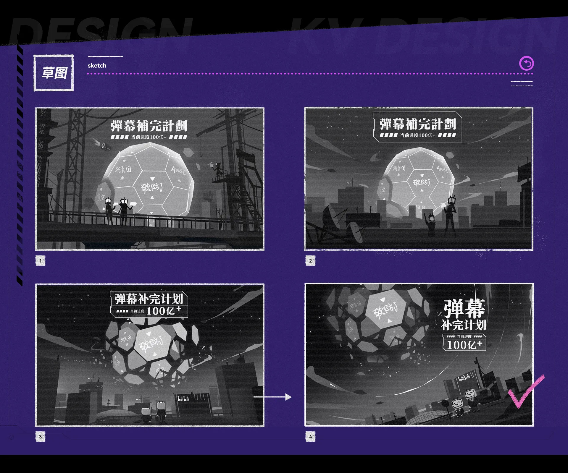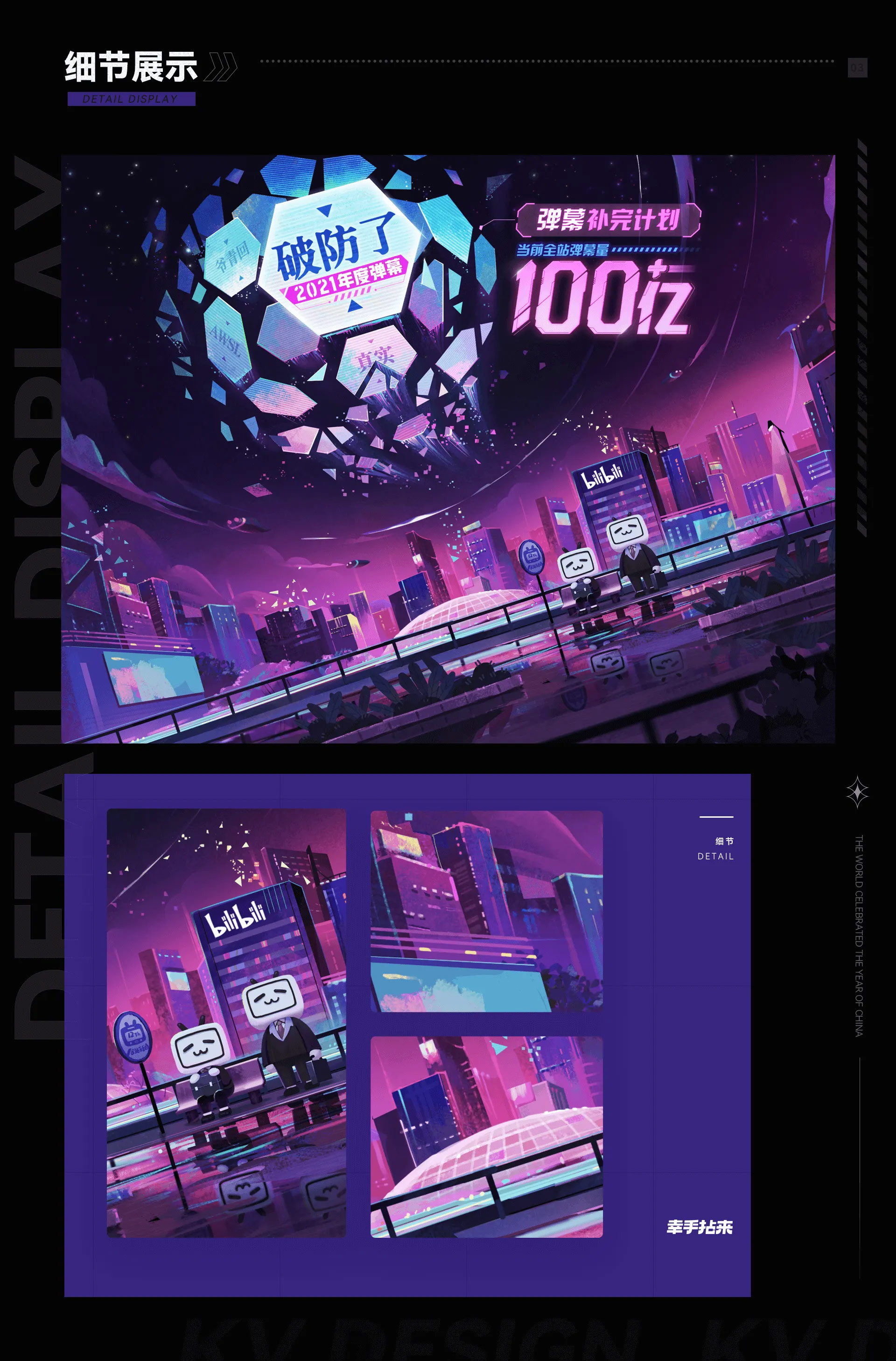 年度百億彈幕活動,以星球碎片為主視覺,從太空中、地平線上,還有從其他方向飛向球體的彈幕,表示所有B站用戶發送的彈幕,構成了彈幕池,集結彈幕文化和賽博朋克風格,展示視覺中心。