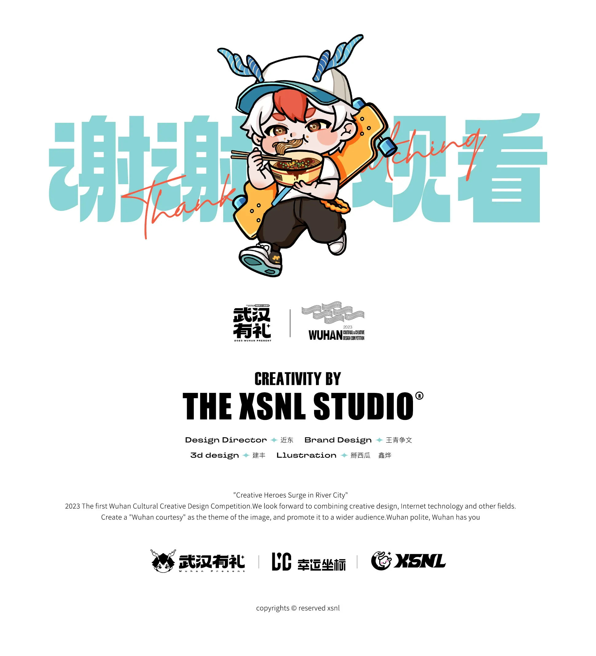 2023首屆武漢文化創意設計大賽由中共武漢市委宣傳部、武漢市商務局、武漢市文化和旅游局共同主辦,旨在推進文化創意IP對實體經濟的助力,深度融合文化創意與城市生產生活,提升城市文化軟實力,打造繁榮興旺的文化英雄城市。有機會參與本次活動并榮獲入圍獎,衷心感謝主辦方和評審老師們的認可。